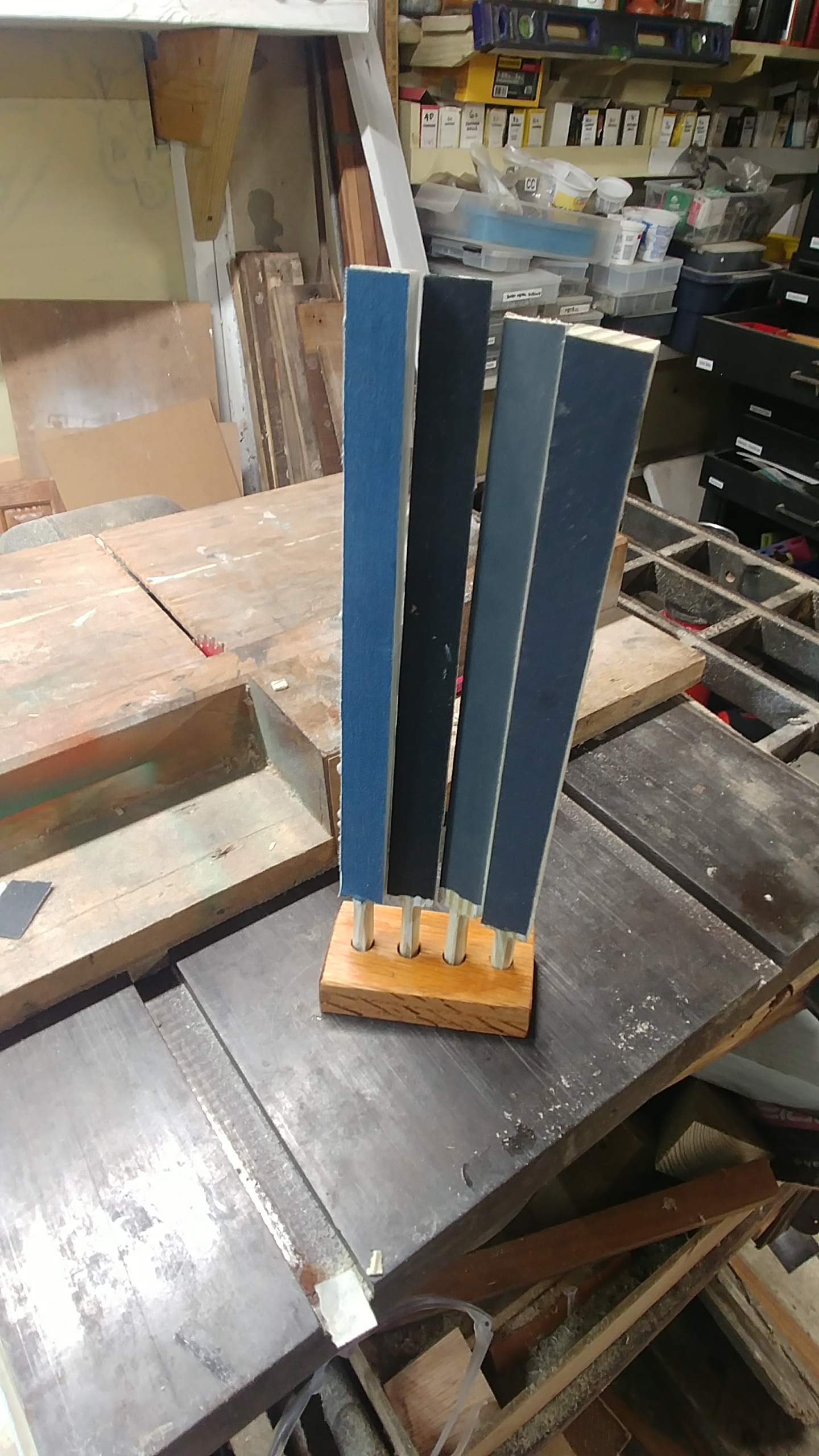 My bench is still a wreck, but I can find my emery sticks now.