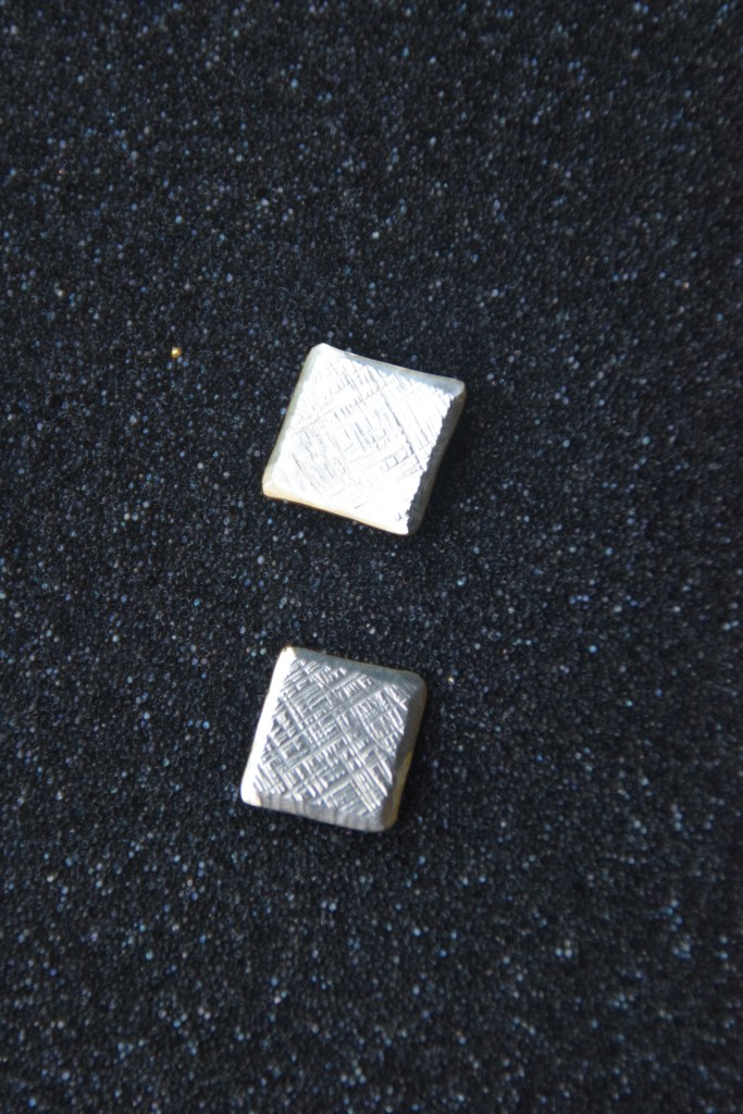#091721.4, Earrings, 11mm sterling silver on copper square studs, crosshatch embossing w/ border, $40